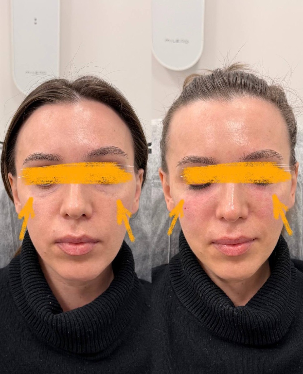 . Как готовится плазмогель? — у пациента берется 1 PRP-пробирка крови — кровь центирифугируется, забирается жидкая часть крови плазма в отдельные закрытые шприцы — шприцы ставятся в специальный аппарат, который нагревает плазму и способствует формированию гелеобразной структуры ~40-60 минут. — готовый плазмогель остывает и готовк иньецированию. Кому подойдет плазмогель: ▪️пациентам, склонным к отекам на филлеры ▪️ пациентам с аллергическими реакциями на филлер ▪️ пациентам для коррекции деликатных зон (носослезная область, губы). Общее время процедуры ~ 1,5 ч. Результат до/после коррекции носослезной борозды.