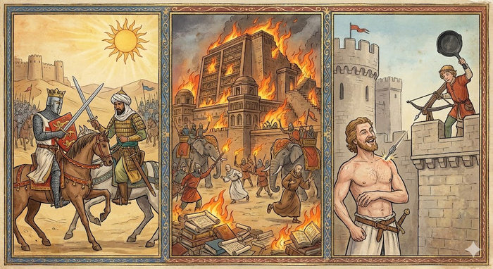 Это было гениальное столкновение тактик. Легкая конница мусульман осыпала крестоносцев тучами стрел, пытаясь спровоцировать рыцарей на необдуманную атаку (как при Хаттине). Но Ричард железной дисциплиной держал строй. И только когда лошади Саладина устали, Ричард отдал приказ о массированной атаке тяжелой кавалерии. Саладин был смят и отступил.