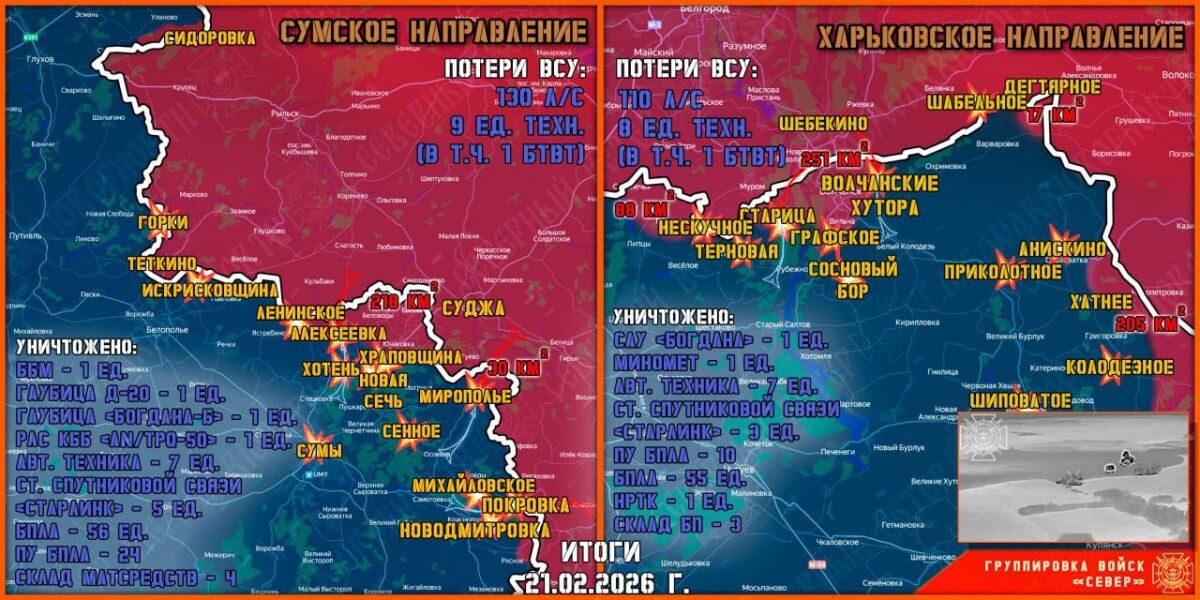 Военкоры Telegram-канала «Северный Ветер» публикуют свежие данные с Курско-Сумского направления. В районе Теткино авиация РФ накрыла позиции противника, а на Теткинском и Глушковском участках фронта полностью разгромлены подразделения 115-й отдельной бригады территориальной обороны ВСУ. Как сообщают источники, группировка «Север» продолжает давить врага, продвигаясь вглубь Сумской области. Украинское командование вынуждено снимать резервы с других участков, чтобы хоть как-то сдержать наступление. Удары нашей авиации и «Гераней» стали настолько интенсивными, что противник в экстренном порядке укрепляет запасные рубежи обороны. При этом, по данным военкоров, ВСУ не прекращают попытки бить по гражданской инфраструктуре Курской и Брянской областей.