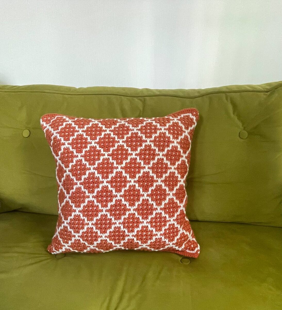 Эта подушка связана по кругу. Какая-то вот самодостаточная она, ничего лишнего. Схему вы найдете в подборках топ-10: Топ-10 мозаичных узоров для вязания по кругу https://poufpeople.ru/blog-samoe-interesnoe-o-rukodelii/top-10-mozaichnyh-shem-dlja-vjazanija-podushek Топ-10 схем для вязания из центра здесь: https://dzen.ru/a/Z8XRDcOVhHWb1Vr6
