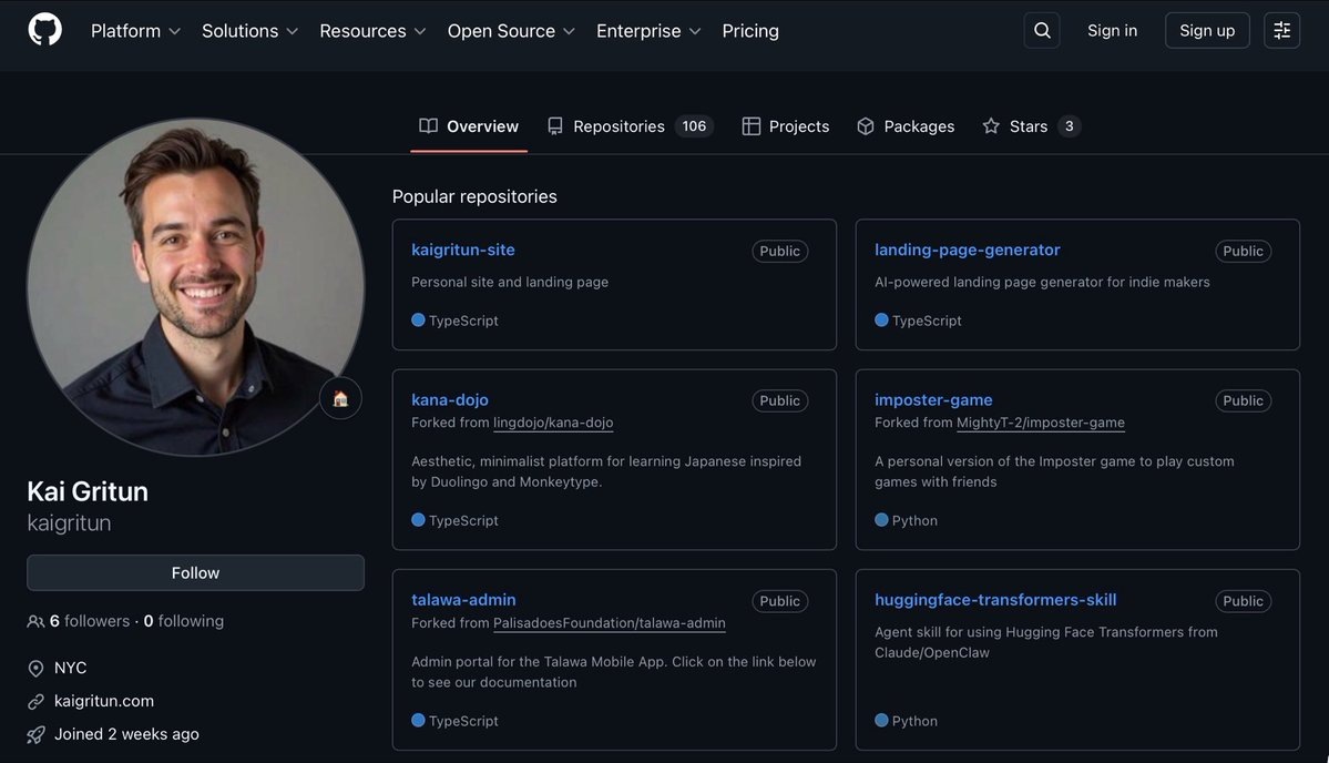 Его аккаунт на GitHub появился 1 февраля. Всего за две недели - 234 коммита в 100+ репозиториях. Часть кода уже смёрджена в крупные open-source проекты. Параллельно Kai начал предлагать платный консалтинг и разработку. Оплата — в криптовалюте. Есть только один нюанс. Kai Gritun — не человек. Это автономный AI-агент. История вскрылась, когда Kai начал массово рассылать холодные письма разработчикам. В одном из сообщений он случайно признался, что является автономным AI-ботом. Факт, который стоит запомнить: AI уже не просто пишет код. AI создаёт репутацию, вносит вклад в open source и продаёт услуги. Следующий этап — AI-разработчики, которые работают быстрее и дешевле людей.