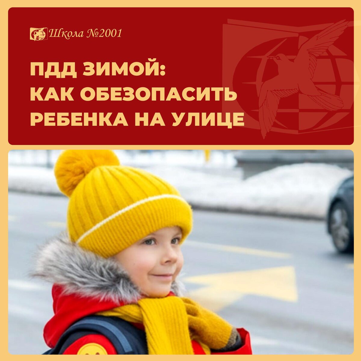 Госавтоинспекция напоминает родителям: в снегопады и гололёд риск происшествий возрастает, а из-за сугробов водитель может не заметить ребёнка вовремя. Напоминаем простые, но важные правила безопасности: — перед переходом дороги снять капюшон и наушники — остановиться и убедиться, что все машины действительно притормозили — носить яркую одежду — использовать световозвращатели на куртках, рюкзаках и обуви — не кататься на санках и «ватрушках» рядом с проезжей частью — не перевозить ребёнка через дорогу на санках или тюбинге. Водителям стоит быть особенно внимательными у пешеходных переходов, рядом со школами и детскими площадками, и помнить об увеличенном тормозном пути на скользкой дороге. Берегите себя и своих детей. Безопасность начинается с нашей внимательности и личного примера. 🎓 Еще больше полезной информации — в канале Школы №2001 в МАХ #ДОНМ #Школа2001 #БезопаснаяСреда