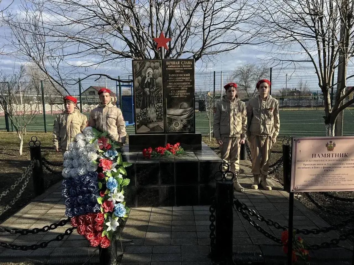 В преддверии Дня защитника Отечества юноармейцы военно-патриотического клуба «Отважные» им. Д. Д. Картышкина несут почетную вахту памяти у памятника трем советским воинам, погибшим в годы Великой Отечественной войны при освобождении Успенского района от немецко-фашистских захватчиков, который расположен на территории школы √4 в селе Коноково: лейтенанту А. А. Молошникову, старшему лейтенанту Н. И. Заводовскому и рядовому А. Н. Селянину. Вахта памяти позволяет молодым людям осознать важность героического прошлого своей страны и прочувствовать связь поколений 🇷🇺 https://max.ru/id2372001505_gos https://ok.ru/group/70000041523919 https://vk.com/public212083585 https://dzen.ru/id/660af8bc3bd95d5b99e56429 - подпишись на СВОй "Рассвет".