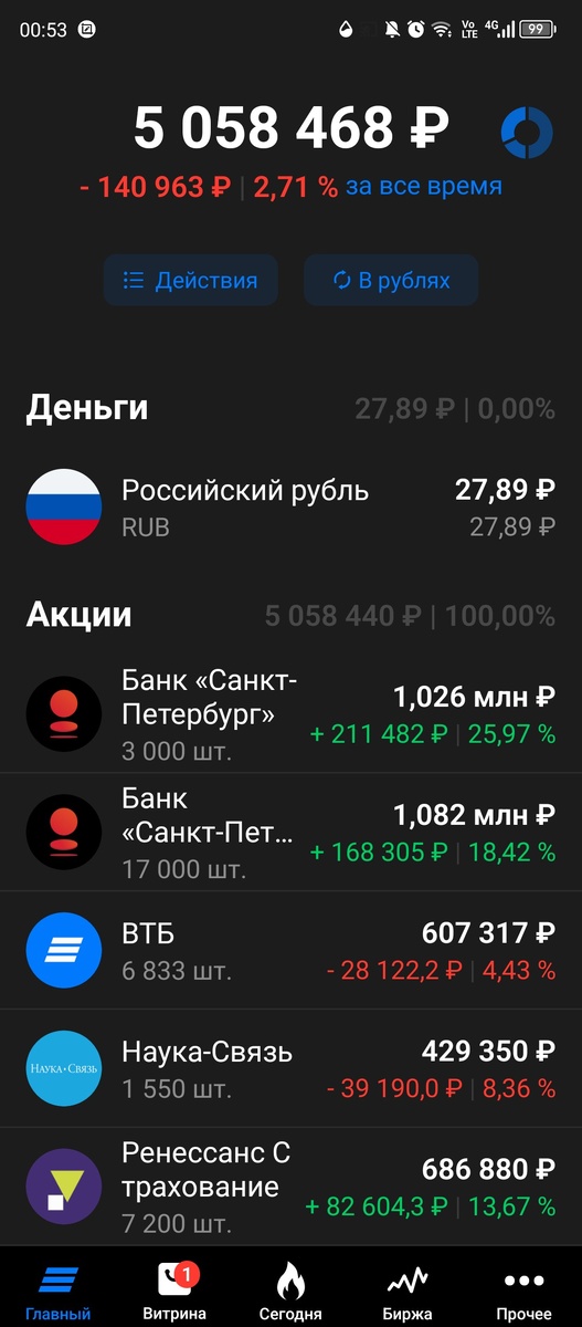 Рассказываю о своем инвестиционном портфеле российских акций, его прошлом, настоящем и будущем, а также показываю картинки с котиками, куда же без них :) Продолжение. Предыдущая часть тут. И прежде чем продолжить Предупреждение! Всё что написано выше и ниже не является инвестиционной рекомендацией. Как-то так. Подошла к завершению 223я публичная неделя моего инвестиционного портфеля российских акций (только акции, только хардкор). Портфель за неделю подрос на 308 тысяч, в отличие от индекса Мосбиржи, который едва шевельнулся, закрывшись в пятницу вечером на отметке 2780,60 пункта. По текущим продажам/покупкам. Все они случились в пятницу, когда на счет пришли плановые 10 тысяч, но этой суммой не ограничились. Но начнем по порядку, с понедельника, когда в информационное поле ворвался председатель правления банка Санкт-Петербург (БСПБ) с комментариями относительно январских результатов БСПБ, «Это позволяет нам рассмотреть возможность направления на выплату дивидендов по итогам 2025 года