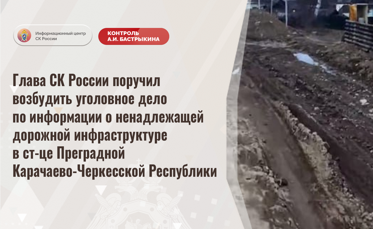 Глава СК России поручил возбудить уголовное дело по информации о ненадлежащей дорожной инфраструктуре в ст-це Преградной Карачаево-Черкесской Республики