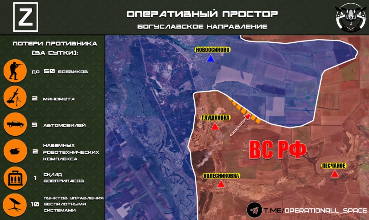 🇷🇺На Богуславском направлении ВС РФ продолжают наступление севернее населённого пункта Глушковка