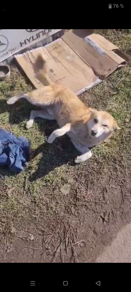 Лежит собака второй день, с передней лапой проблема.Возможно после дтп.