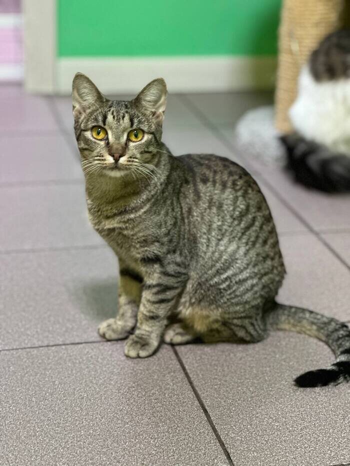 Есть у нас подопечные, про которых писать легко. А есть те, про которых ну вот прямо не пишется. Здесь дело не в приоритетах. А в том, что есть те, с кем всё время что-то происходит. А есть просто отличные ребята, пионеры, которые просто хорошие. Которым просто бы домой. Вот одна из таких пионерок – это наша кошечка Мариса. Дисциплинированная, спортивная, любознательная, умная. Немного робеющая перед незнакомыми людьми. Она и перед нами-то застеснялась, когда приехали навестить и кота Филю привезли. Гладиться не далась, а фотографировать – пожалуйста. С теми, кого Мариса видит чаще, она, конечно же, более контактна. Но всегда выходит посмотреть – кто пришёл, что принёс, к кому из котанов приехали. А вдруг смотрины? Жаль вот только, что к Марисе никто не приезжает, кроме нас. А иногда сядет на котодомике и как будто о чём-то мечтает. Или что-то вспоминает. Может, дом свой вспоминает, где она жила, а Мариса точно была домашней – у нас тут бездомных нет, своими руками всех переловили и пр
