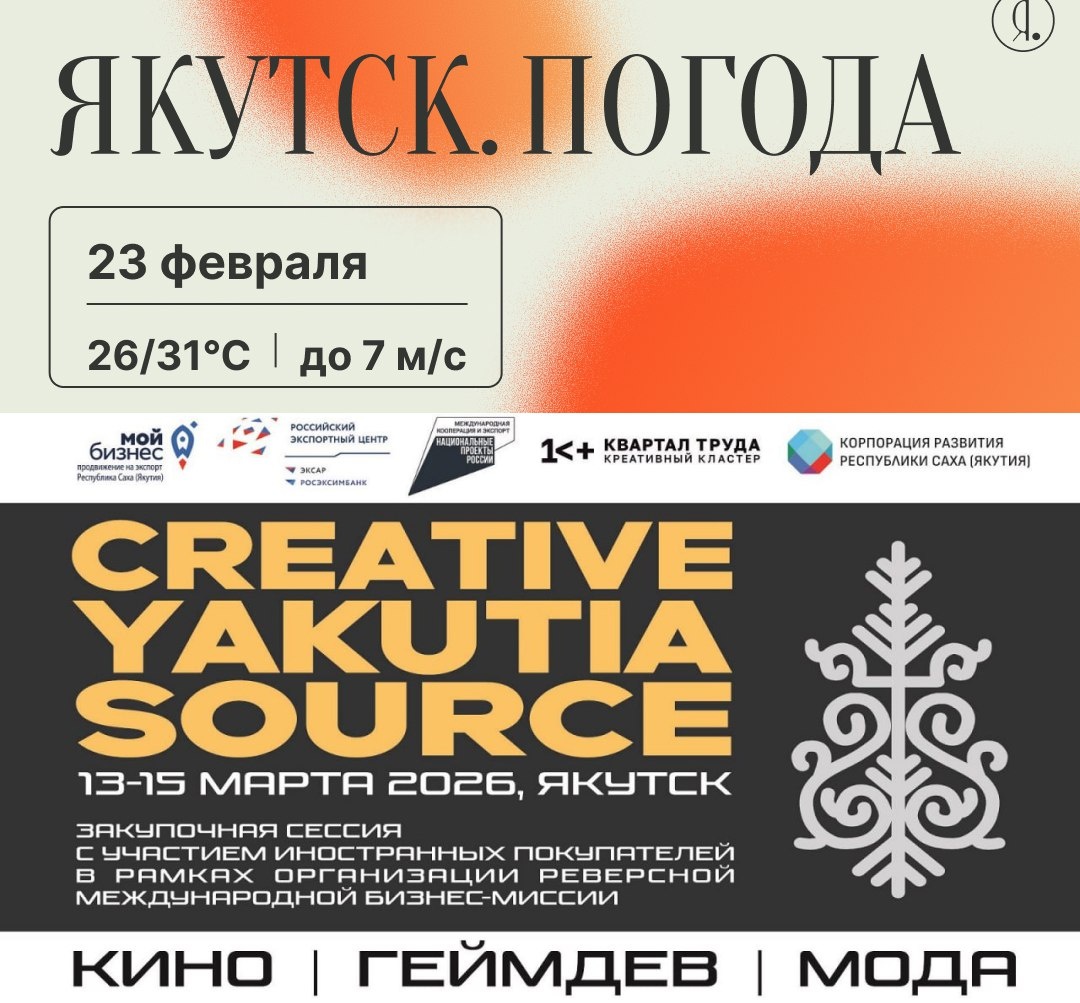Кого приглашают? Экспортно-ориентированные компании и предпринимателей Якутии, занятых в сферах: 🎬 КИНОИНДУСТРИЯ (продакшн, анимация, пост-продакшн) 🎮 ГЕЙМДЕВ (разработчики игр, студии, создатели цифрового контента) 👗 МОДА (дизайнеры одежды, обуви, аксессуаров из натуральных материалов, ювелирная отрасль, производителей товаров народных художественных промыслов) 13-15 марта к нам в Якутск прибудут представители бизнеса из 5 зарубежных стран: 🇧🇾 Республика Беларусь 🇰🇿 Республика Казахстан 🇨🇳 Китайская Народная Республика 🇲🇳 Монголия 🇹🇷 Турецкая Республика Online Якутия | Ждем вас в МАХ