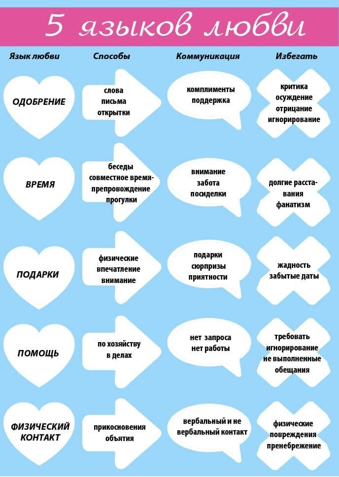 Позавчера с мужем состоялся разговор на почве недопонимания — для меня ситуация была сродни катастрофе, для него — незначительный пустяк. Я позволила себе пообижаться, но всё же быстро обида сменилась честным разговором на 1,5 часа. Вот уже который год мы учимся сразу обсуждать возникшую проблему, не доводя всё до крайностей. Получается ли всегда? Нет. Потому что, повторюсь, мы учимся. 🤔 Чему же мы так долго учимся? Сегодня я бы хотела подробно освятить классическую и очень глубокую проблему в отношениях, которая коренится не в отсутствии любви, а в фундаментально разных способах восприятия мира, потребностях и «языках любви». Она есть АБСОЛЮТНО У ВСЕХ. ❓Что это такое? Язык любви — это тот способ, которым человек лучше всего понимает, что его любят, и тот способ, которым он инстинктивно выражает свою любовь. 📋 Классическая модель выделяет 5 основных языков (по Гэри Чепмену), но на самом деле их больше, и у каждого человека может быть своя уникальная комбинация: 1️⃣Слова поощ