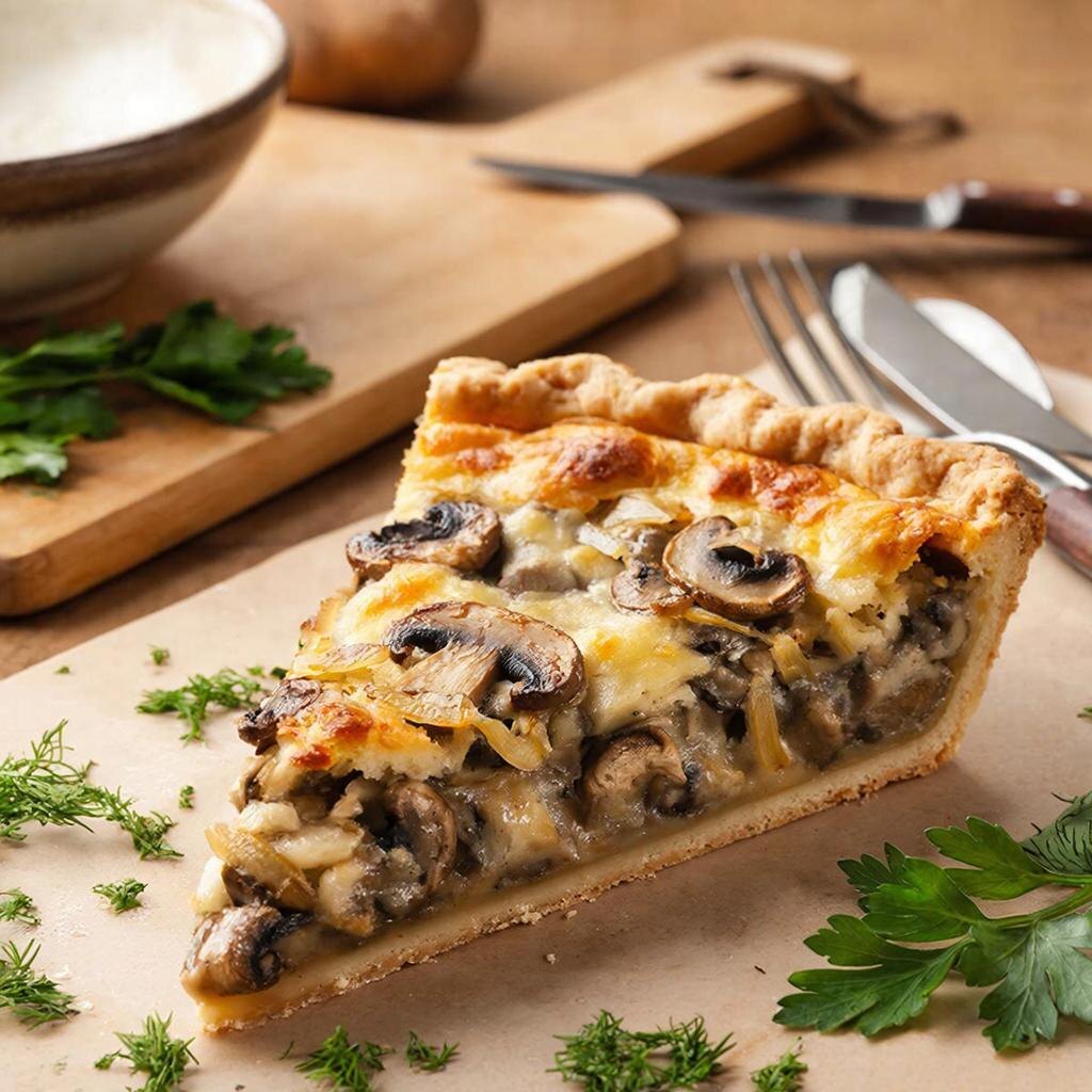 Тесто (без дрожжевое) разморозить и раскатать слоем 5-7 мм по размеру противня. Противень смочить холодной водой, перенести тесто с помощью скалки на противень, расправить. Лук пожарить на масле до золотистого цвета. Шампиньоны очистить, промыть, обсушить, нарезать половинками, сыр нарезать кусочками и вместе с шампиньонами положить на слой раскатанного теста, посыпать жареным луком, рубленой зеленью петрушки, посолить, поперчить. Пирог выпекать при температуре 225-230 градусах. Охладить, нарезать на порции и подать на закуску. Ингредиенты: 300 г. слоеного теста, 2 головки репчатого лука, 1 столовая растительного масла, 375 г. свежих шампиньонов, 125 г. сыра, соль, перец черный молотый, зелень петрушки