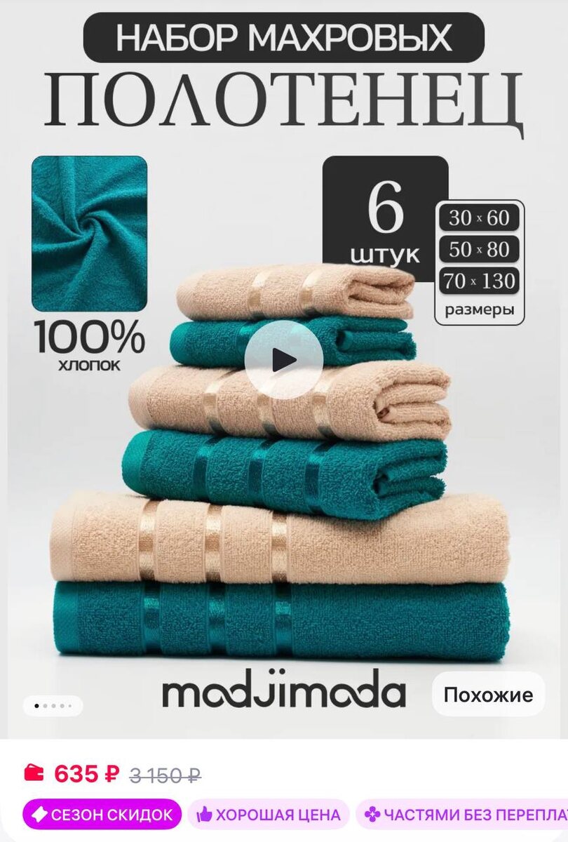 Modjimoda Полотенце махровое банное - набор 6 шт