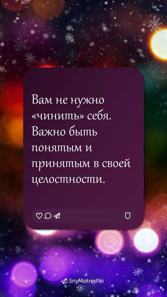 Иногда нам нужна не длинная статья, а одна точная фраза — чтобы опереться, выдохнуть и почувствовать: «это про меня». Эта рубрика — коллекция таких фраз. «Внутренний голос» для тех, кто на пути к себе. Сохраняйте ту, что нашла в вас отклик сегодня. Поддержать автора Александра Бóгдан,