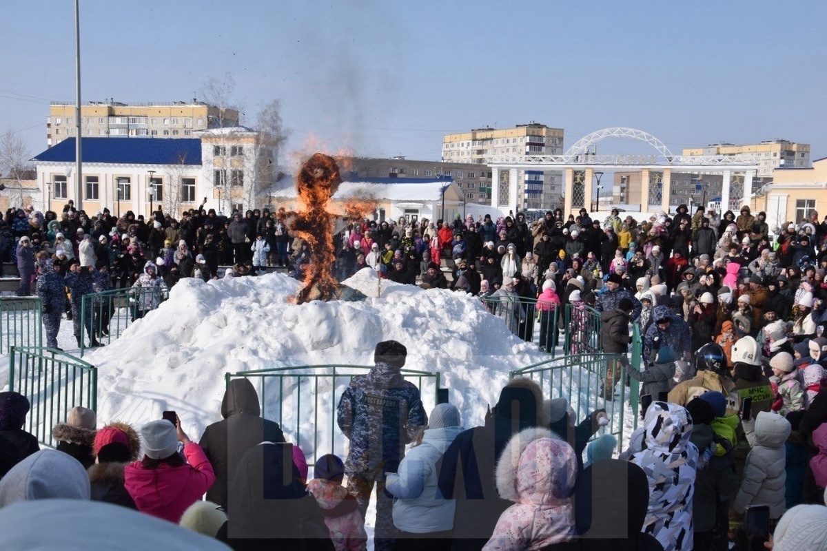 На площади Ленина в Ишимбае с раннего утра кипела жизнь: работники учреждений культуры устанавливали столы, на которые раскладывали блины и другие яства, разогревали самовары. Они участвовали в конкурсе блинов. Праздник начался с театрализованного представления на сцене у Дворца культуры. Перед зрителями выступали вокальные коллективы, под весёлые мелодии дети водили хороводы, а Зима передала эстафету Весне. Работники библиотечной системы, комитета по делам молодёжи, учреждений дополнительного образования проводили для детей различные игры, эстафеты. Каждый смог найти на празднике то, что ему по душе: кто-то угощался блинами, кто-то общался с друзьями, смотрел представление и аплодировал артистам. Кульминацией праздника традиционно стало сжигание чучела Зимы. Ребятишки кидали в горящую бабу снежки, но это не помогло потушить пожар, зима сгорела, а, значит, в скором времени к нам придёт весна. Ирина Вахонина Фото: Ирина Вахонина.