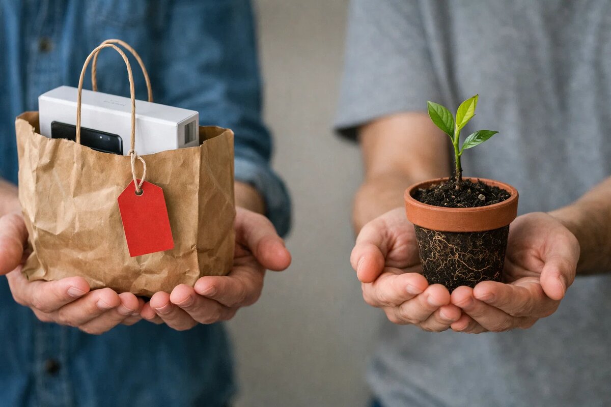 Новый телефон. Отпуск. Куртка со скидкой. Кажется — я трачу деньги. На самом деле я трачу время. Время, которое могло работать на меня. Разница между покупкой и инвестированием не в сумме. В одном случае деньги уходят. В другом — приумножаются. Проблема в том, что мозг не различает. Оба действия дают дофамин. Но последствия противоположны. Сегодня разберём, как перестать кормить потребление и начать кормить капитал. Купил кофе за 300 рублей. Деньги ушли навсегда. Положил 300 рублей в инвестиции. Через 10 лет — 600. Через 20 — 1200. Кофе давно забыт, деньги всё ещё растут. Это не про отказ от кофе. Это про осознанность. Каждая трата — это выбор между мгновенным удовольствием и будущим доходом. Не всегда в пользу будущего. Но всегда — выбор. Покупки не складываются. Их много — они не работают вместе. Инвестиции умножаются. Проценты приносят проценты. Рост ускоряется. Я потратил 100 000 на гаджеты за год. Они устарели, сломались, потерялись. Если бы инвестировал — сейчас было бы 200 000.