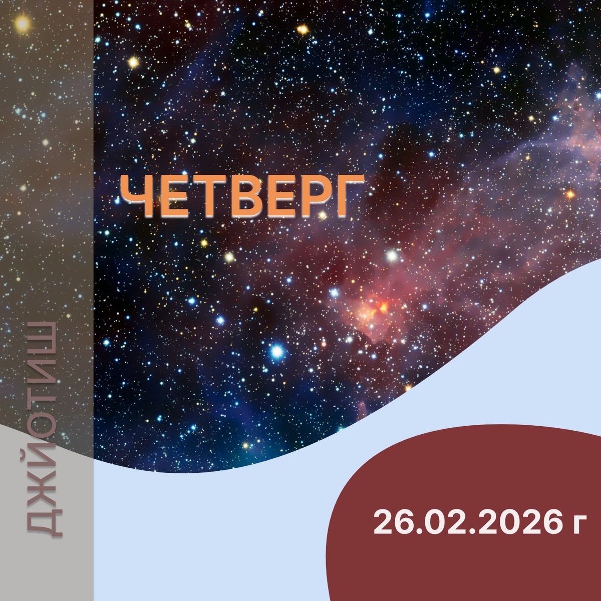 В период с 26.02.2026г по 27.02.2026г Луна находится в созвездии БЛИЗНЕЦЫ.