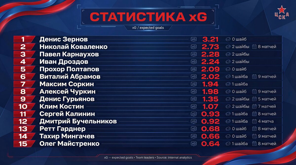 Дроздов единственный, кто набрал xG в каждой встрече. За весь сезон у Вани только четыре матча с нулевым хG, меньше только у Соркина (2). У Коваленко рывок +8, по сравнению с предыдущим отрезком, — лучшая динамика.