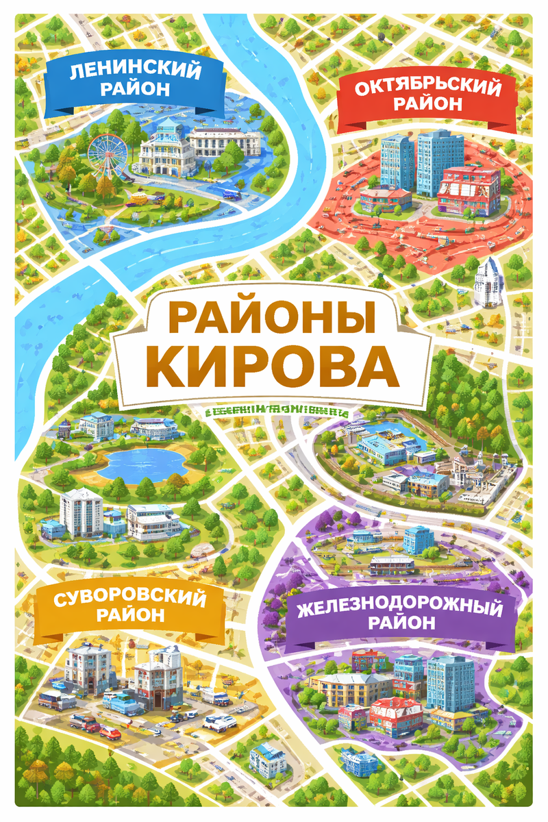 Киров — город четырех районов. Официально их именно четыре: Ленинский, Октябрьский, Первомайский и Нововятский . Но внутри каждого — свои микрорайоны, свои поселки, свои особые миры. Можно жить в центре и дышать выхлопными газами, а можно в Ленинском и ходить в тапочках до Ботанического сада. Я прошагал по всем четырем, поговорил с местными (имена, естественно, не называю) и собрал всю подноготную. Держите расклад.