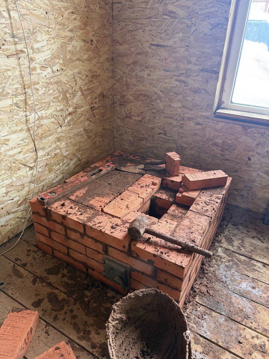 А тем временем печник Олег, очень рекомендую 💪начал класть печь в мастерской💪