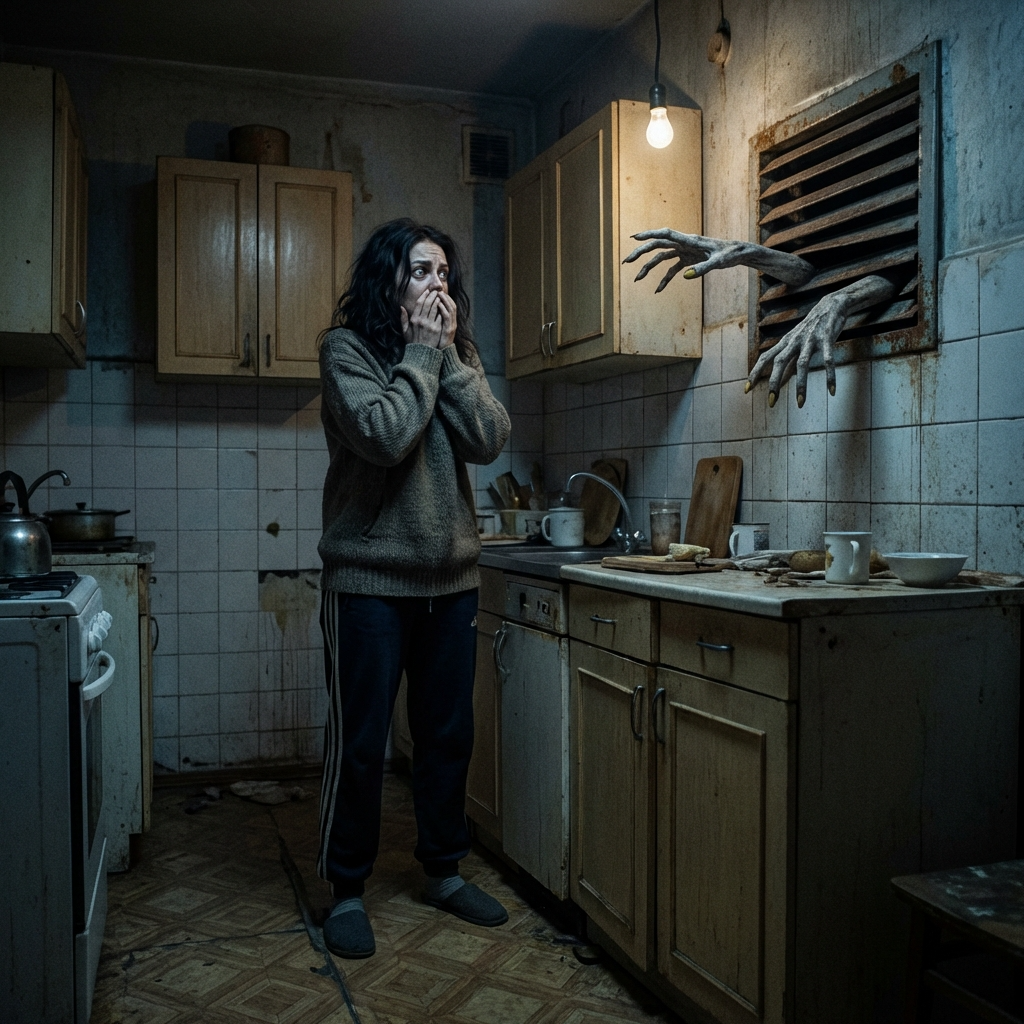 На записи не было никого. Пустая кухня, пустой коридор. Но в 2:17 отчётливо слышался стук. Тук-тук-тук. Камера фиксировала звук, хотя в комнате никого не было. Аня пересматривала запись снова и снова, вглядываясь в каждый кадр. В какой-то момент ей показалось, что вентиляционная решётка на кухне чуть дрогнула. Она увеличила изображение — точно, решётка шевельнулась, будто кто-то толкнул её изнутри.