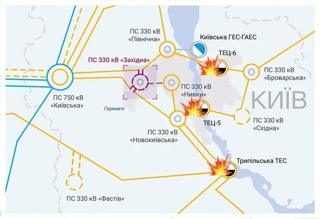 Киевский энергоузел Наши ракетчики почитывают нужные каналы в телеграмме и сегодня нанесли удары по заявкам - ТЭЦ-5, ТЭЦ-6 и по Трипольской ТЭС. Слесаря на выезд. День сурка начался. схемы и карты