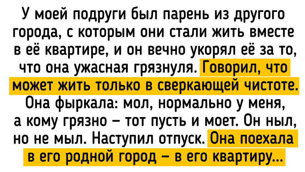 У меня у жены есть привычка: если она ест пачку чего-то, то доедает почти всё, а потом оставляет пол-ложечки или один кусочек — непонятно для кого. И потом эта пачка лежит в холодильнике или на полке, пока я не проведу ревизию. Также она ночью встаёт попить воды, наливает каждый раз в новую чашку, и утром (я встаю раньше) я сгребаю в раковину батарею недопитых чашек. Но зубную пасту она не дожимает — обычно открывает новую, когда в другой ещё половина. Спрашиваю, зачем — ответ всегда один: «Я не заметила её…». Да, всегда «не замечает». Я иногда люблю печь торты и покупаю творожный сыр — он долго хранится. Ребёнок его любит. И она ему открывает, даёт ложечку и закрывает. Проблема в том, что каждый раз открывает разные пачки, и потом, когда я собираюсь сделать тортик, обнаруживаю, что там уже 3 пачки вскрыты и с плесенью. И спрашиваю: почему бы не есть одну? Ответ один: «Я не заметила, что там есть ещё…». При этом она же до этого все 3 открывала! Как можно не заметить, что ты вчера откры