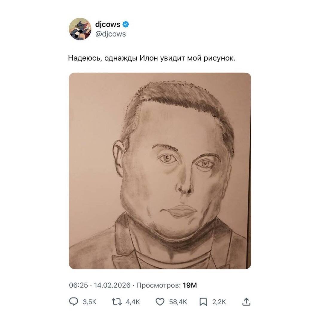 Подросток решил выложить в X нарисованный им портрет Илона Маска. Пользователи его творчество оценили и за два дня пост собрал почти 20 млн просмотров, а в комментариях и других соцсетях начали появляться мемы на основе рисунка. Самому Илону, портрет не особо понравился и он просто забанил автора. Достойный поступок?