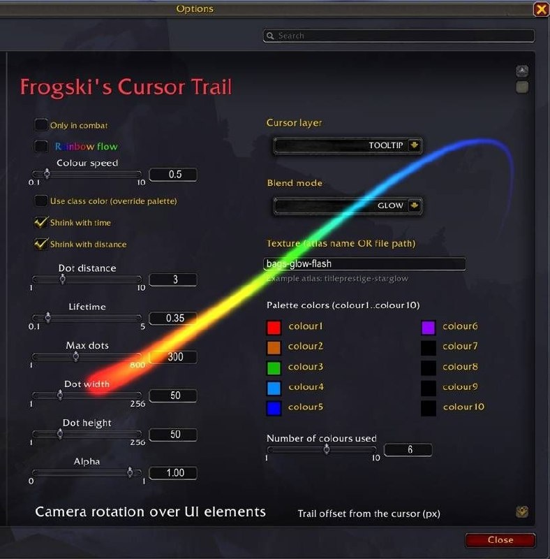 затрудняет применение способностей в определенной области или взаимодействие с элементами на экране. Отличный адон вам в помощь Frogski Cursor Trail, В настройках дополнения можно изменять цветовую палитру, расстояние, размер, продолжительность и т.д. Однако сильная сторона дополнения заключается в его профилях и возможности выбора отображения под ситуации. Можно выбрать различные визуальные параметры для курсора и назначить их определенным ситуациям, таким как верховая езда, открытый мир, подземелья, рейды, арены, бой или даже в соответствии со специализацией персонажа. ☕ 📱Twitch📱YouTube📱Rutube 📱Dzen🌐wowloot.ru📱vk