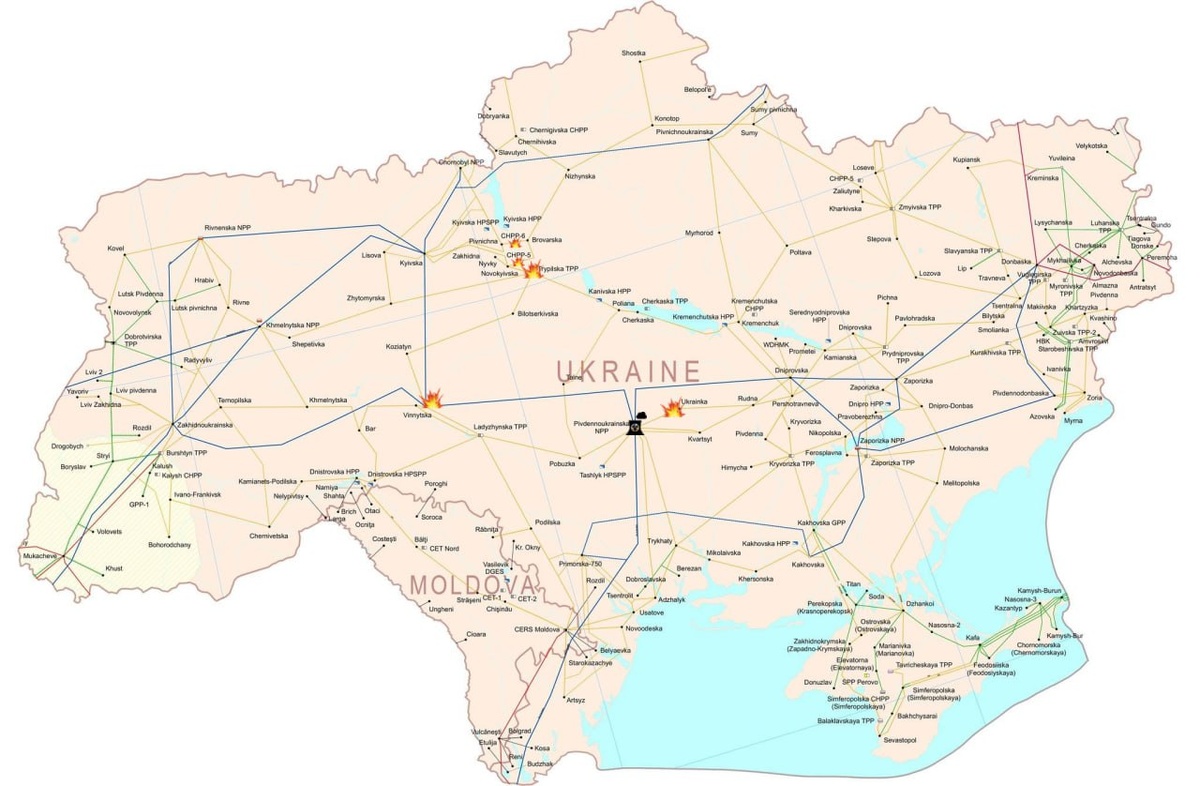 Кроме киевских энергетических объектов, удары были по двум подстанциям - "Украинка" 330 кВ и "Винницкая" 750 кВ, а это уже высоковольтные узлы непосредственно связанные с Южноукраинской АЭС. схемы и карты