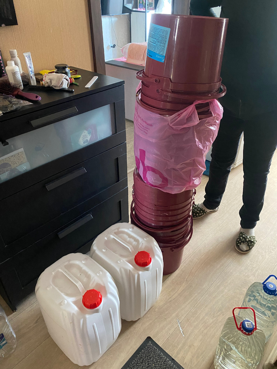 Эти ведра она где то купила по 30 рублей и всё это одним разом притащила на себе домой.
