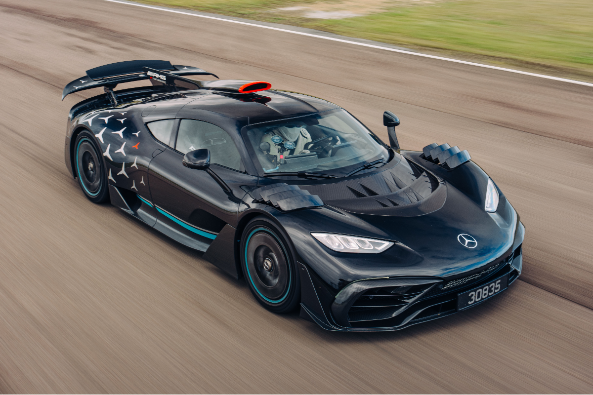 Mercedes-AMG One – это, по сути, легализованный для дорог общего пользования болид «Формулы-1». В основе – 1,6-литровый турбированный V6, созданный по архитектуре чемпионского двигателя команды Mercedes-AMG Petronas, дополненный четырьмя электромоторами. Суммарная мощность превышает 1000 л.с.