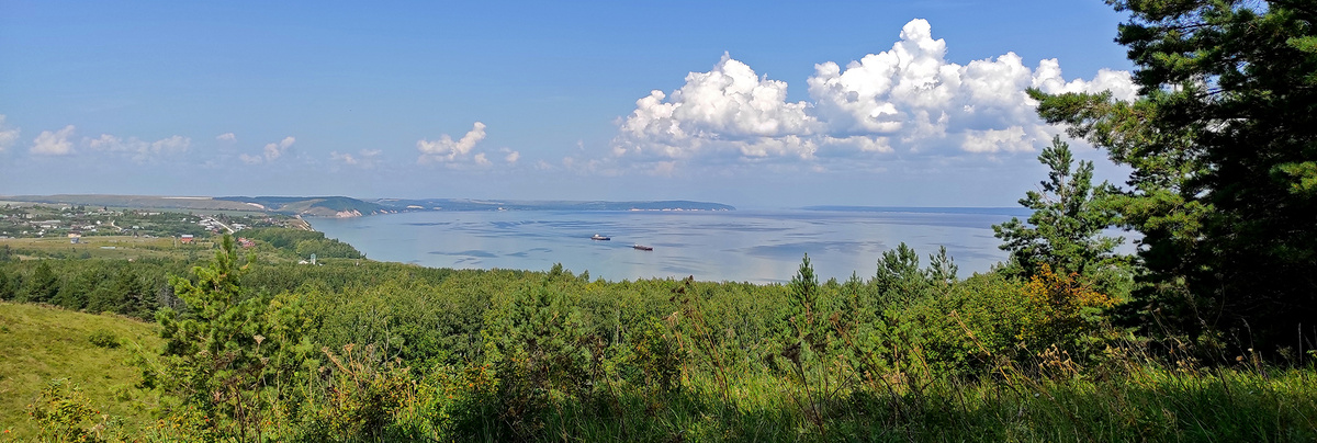 Дорога плавно идет вверх, уходит в залитые солнцем поля и луга. Чем дальше, тем красивее вид на пройденный путь. Это один из самых красивых участков за все время моего пути. Сложно описать, в чем его прелесть — дорога, уходящая в даль, холмы и простор Волги. Очень тихая и спокойная красота родной природы.