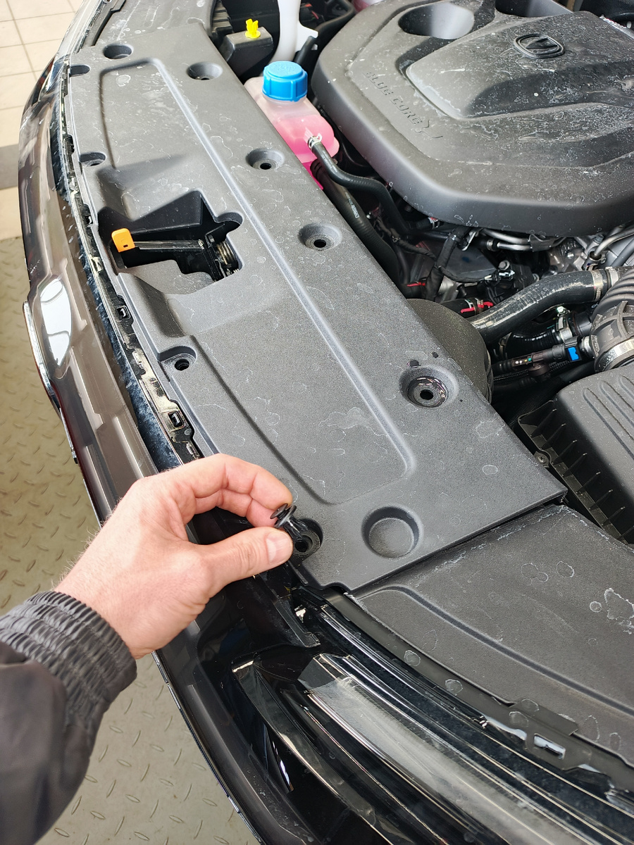 Далее снизу откручиваем болты и снимаем клипсы подкрылка