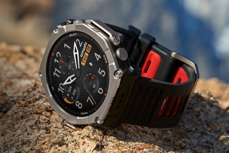В новом поколении безель, тыльная крышка и кнопки выполнили из авиационного титана, а прикрытый сапфировым стеклом круглый AMOLED-дисплей (1.5") стал втрое ярче (3000 нит). Часы обладают двойной сертификацией для дайвинга и классом защиты 10 АТМ. Кроме того, гарантируется штатная работа при температуре до -30°C. Несмотря на сохранение веса (89.2 г), разработчикам удалось увеличить емкость батареи на 74% (870 мАч) – обещают работу до месяца без подзарядки и до 50 часов при активном GPS. В T-Rex Ultra 2 предустановлены память 64 ГБ и детальные цветные глобальные карты. Длина выстроенного маршрута может достигать 100 км, а часы способны разбивать его на участки и показывать профиль высот. Можно устанавливать ключевые ориентиры – источники воды, укрытия и прочее. Двухдиапазонный GPS-модуль поддерживает работу с 6 спутниковыми группировками. Динамик и микрофон могут быть использованы для звонков по Bluetooth. Поддерживаются офлайн-воспроизведение музыки, регулировка темпа с учетом местности