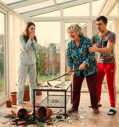 — А-а-а, проснулись, голубки! А я вот решила уют вам навести. Раз уж родную мать на юбилей не позвали, так я сама приду. Дурында! Вот тебе подарок! — хохотала свекровь, громя веранду.