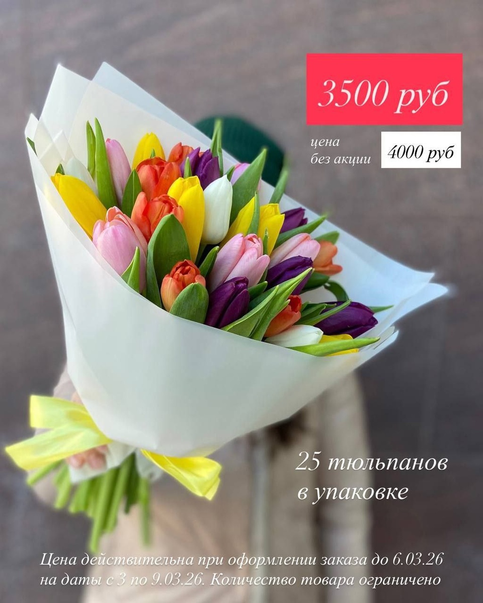 🌷 Да простят великодушно ещё непоздравленные мужчины, но нас в студиях ЦВЕТЫ НА ВЕНСКОЙ и БОЛЬШЕВИКОВ 37к1 @FLOVERSTUDIO уже несколько недель просят открыть продажи на 8 марта. И мы их открываем! Как всегда, предлагаем самые выгодные цены при условии предзаказа. ‼️ Предзаказ по акции - до 6.03.25 ‼️ Минимальный заказ - от 1500₽ 🚚 Доставка по Кудрово 5-8.03.26 - 300 руб. Выбрать букет и сделать заказ: - в T.me - @floverstudio или @katya_flover - на сайте - https://flover.studio - в WA или MAX - +79030115484 Или ждём в гости: 📍Кудрово, ул. Венская, 4к2, с 9 до 21 ч. 📍СПб, пр. Большевиков, 37к1, с 9 до 21 ч. *Цены действительны при оформлении заказа до 6.03.26 на даты с 3 по 9.03.26. ** Студия оставляет за собой право остановить прием заказов в любой момент, т.к. количество товара по данной цене ограничено.