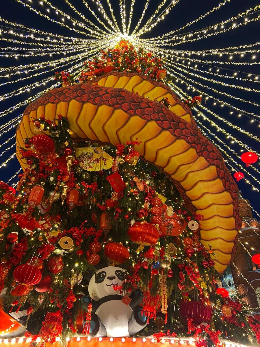 Обнаружила, что Мирош впервые на Красной площади. Красиво украсили. Но по фоткам ощущение, что там чуть ли не вся площадь украшена. По факту — небольшой пятачок и рядом ларьки с едой и сувенирами. Народу тьма, но оно и ожидаемо. Вы знали, почему в Китае встречают Новый год в красном? Почему всё в бумажных фонариках? А я теперь знаю.😁 По легенде, однажды монстр уничтожил всех жителей, не тронув ровно одну семью. Она была одета в красное. Сделали вывод, что красный отпугивает нечисть. И с тех пор в Китае очень почитают этот цвет, а в новогоднюю ночь все облачаются в красный. Бумажные фонарики защищают от нечисти и привлекают удачу и любовь. Были на Манежной? Какие планы на выходные? #фэмили_тайм #куда_пойти_семьёй