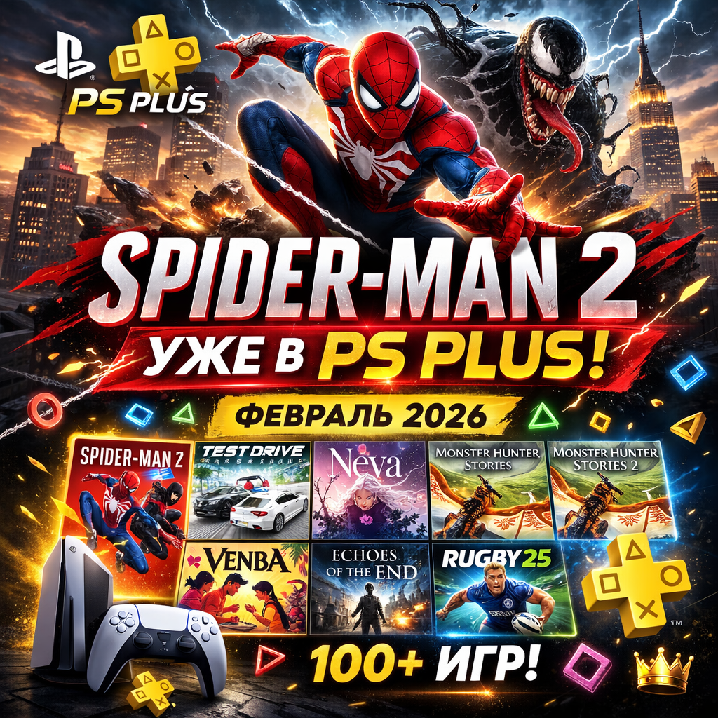 Февраль 2026 стал неожиданно сильным месяцем для подписчиков PlayStation. Sony официально добавила Marvel’s Spider-Man 2 в каталог PS Plus Extra и Deluxe, сделав один из главных эксклюзивов PS5 доступным по подписке. Игры каталога стали доступны 17 февраля 2026 года, и для многих игроков это один из самых громких апдейтов PS Plus за последнее время. --- 🕷 Почему Spider-Man 2 в PS Plus — большое событие Marvel’s Spider-Man 2 — блокбастер Insomniac Games, где можно переключаться между Питером Паркером и Майлзом Моралесом, исследуя расширенный Нью-Йорк и сражаясь с Веномом. Игроков ждёт: ✔ огромный открытый мир (включая Бруклин и Квинс) ✔ новые механики перемещения (Web Wings) ✔ разные способности героев ✔ сюжет с Веномом и Кравеном С момента релиза игра закрепила статус одного из ключевых эксклюзивов PS5, поэтому её появление в подписке воспринимается как огромная ценность для игроков. --- 🎮 Все игры PS Plus Extra и Deluxe в феврале 2026 Помимо Spider