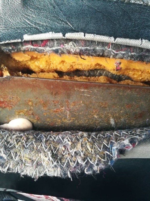 Торчит перед лицом пассажира оголенный острый лист железа!!!! А если сидит ребенок? А если толчок или торможение? Так и у взрослого ,и ребенка поллица не останется. Кто подписывает путевые листы и выпускает на линию такой опасный маршрут?