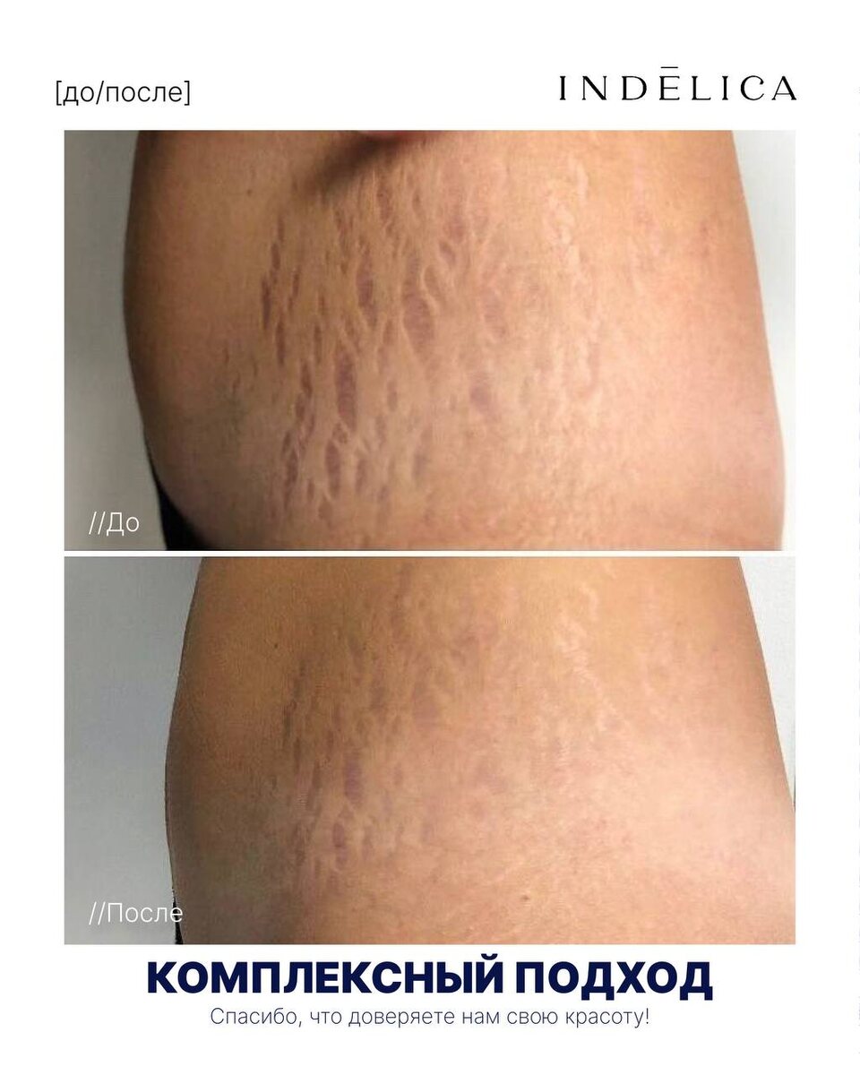 …»? 🙈 После беременности кожа меняется — и иногда отражение в зеркале больше не радует. Кремы не работают. Время идёт. А ощущение, что вернуть гладкость невозможно, только усиливается. Но правда в том, что с растяжками можно работать. Важно — правильно 🤍 В Indelica мы не используем «один универсальный метод». Каждая история кожи уникальна — и протокол всегда подбирается индивидуально. ЧТО МЫ ПРИМЕНЯЕМ: 🔹 Аппаратные методики — для глубокого ремоделирования кожи и выравнивания рельефа. 🔹 Инъекционные методики — для стимуляции выработки собственного коллагена и эластина. Иногда достаточно одной технологии, иногда лучший результат даёт их сочетание. Решение принимает врач после диагностики — с учётом глубины растяжек, плотности кожи и ваших ожиданий 🙏🏼 И сейчас — идеальное время для начала курса. В сезон низкой солнечной активности кожа восстанавливается быстрее и без риска пигментации. Посмотрите на фото «до/после» — кожа действительно может выглядеть иначе. Если вы давно