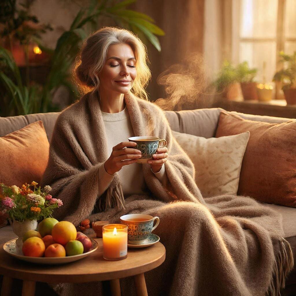 - Дом. Создание уютного пространства вокруг себя. Мягкие пледы, красивая посуда, приятный свет, комнатные растения.