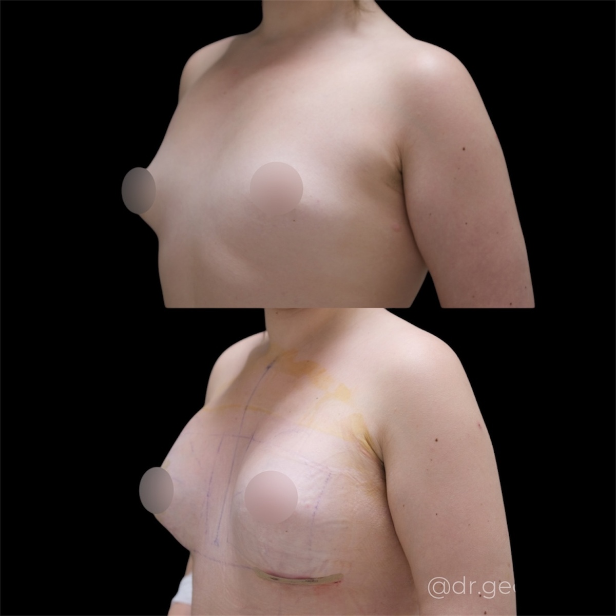 Размер груди после маммопластики зависит не только от объёма импланта (мл), но и от: