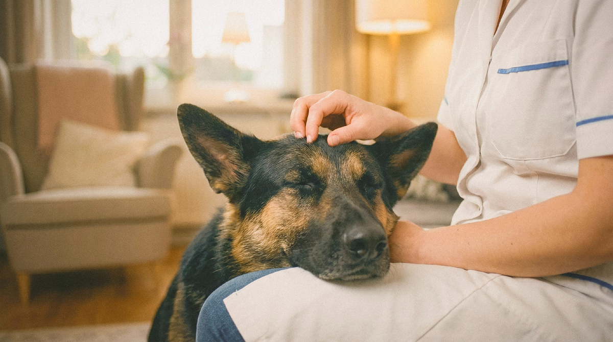 Лариса Павловна пришла в халате - сразу со смены, как договаривались. Виктор Сергеевич встретил её в коридоре, провёл в комнату. Вал при виде халата метнулся под стол - привычно, как в прошлый раз. Забился в угол, прижал уши.