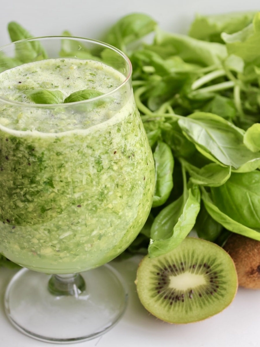 Ингредиенты: ▫️яблоки голден — 1 шт. ▫️киви — 1 шт. ▫️свежий базилик — 1 пучок ▫️лаймовый сок — 1 ст. л. ▫️вода — 100 мл. Способ приготовления: 1. Киви и яблоко очищаем от кожуры, у яблок удаляем сердцевину. 2. Наливаем очищенную воду из фильтра в блендер и погружаем в него все остальные ингредиенты. 3. Взбиваем до однородной консистенции. Готово! Приятного аппетита 🍏