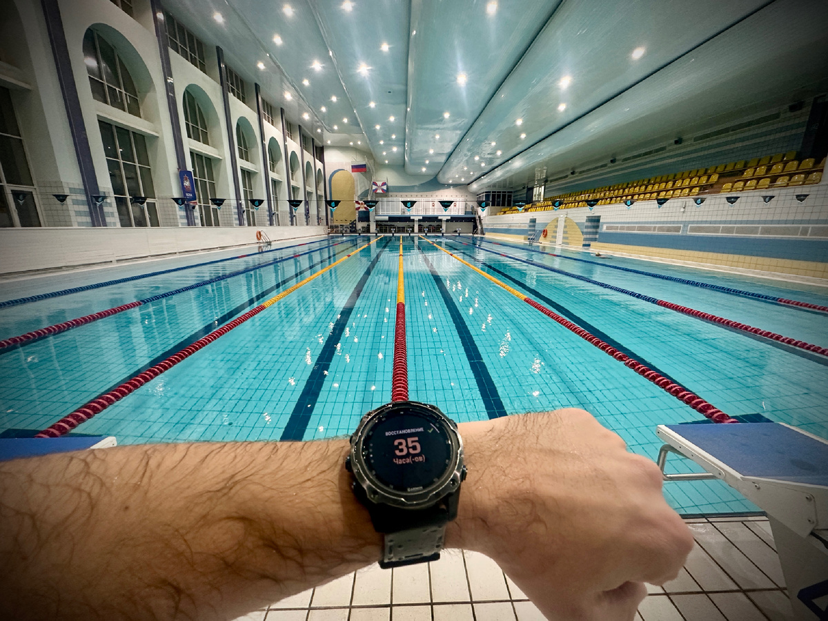 Цель была по 1:55-1:57. Так и получилось. Каждый четвертый - руки. Третий (последний) круг я что-то «зачастил» с гребками. Особенно последний отрезок на руках. Там я попробовал ускориться за счет частоты работы рук. Чуть быстрее вышло, чем предыдущие отрезки на руках, но по ощущениям «вхолостую» махал. Надо было бы потерпеть, наверное и проплыть на низкой частоте гребков.
