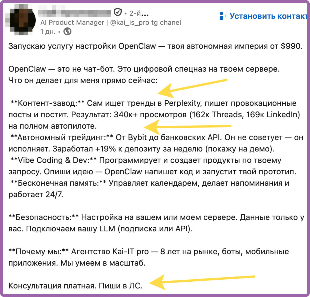 Эти ребята знают, где бабули и как акулы сразу плывут в нужном направлении. За неделю 19%+ депозит? Легко, ИИ сделает - каждую неделю будет делать. И т.п. Вот скажите, если все так здорово - зачем человеку давать консультации в личке за деньги? У вас +19% к депозиту каждую неделю же... Бррр.. Есть человек муровей, человек паук, железный человек, а тут - человек пiздешь. Русский ИТ бизнес