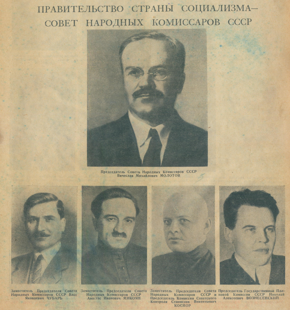 «Газеты – консервы времени» (Карл Краус) 1938, февраль – Огонёк Февральский номер «Огонька» 1938 года знакомит читателей с составом Совнаркома СССР. Наркомы (министры) – элита коммунистической партии, руководители высшего звена. 12 наркомов - умрут своей смертью, 16 - будут казнены в ближайшие пару лет, один – покончит с собой. Молотов. Пережил все политические потрясения, ушел на пенсию в 1963 году, умер в 1986 года в возрасте 96 лет. Чубарь. В феврале 1939 года расстрелян по обвинению в антисоветской деятельности и шпионаже в пользу Германии. Микоян. Вышел на пенсию в 1966 году, умер в 1978 году в возрасте 82 лет. Косиор. В феврале 1939 года расстрелян по обвинению в антисоветской деятельности и принадлежности к подпольной «Польской военной организации» Вознесенский. Осенью 1950 года расстрелян как участник «Ленинградского дела». Литвинов. В 1951 году умер от инфаркта в возрасте 75 лет. Ежов. В феврале 1940 года расстрелян по обвинению в подготовке антисоветского восстания и покушени