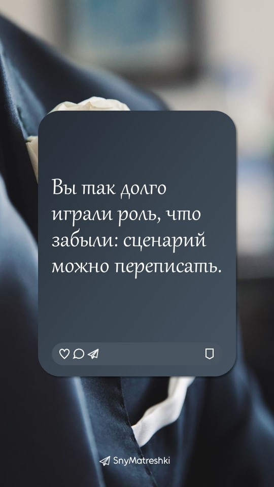 Иногда нам нужна не длинная статья, а одна точная фраза — чтобы опереться, выдохнуть и почувствовать: «это про меня». Эта рубрика — коллекция таких фраз. «Внутренний голос» для тех, кто на пути к себе. Сохраняйте ту, что нашла в вас отклик сегодня. Поддержать автора Александра Бóгдан,