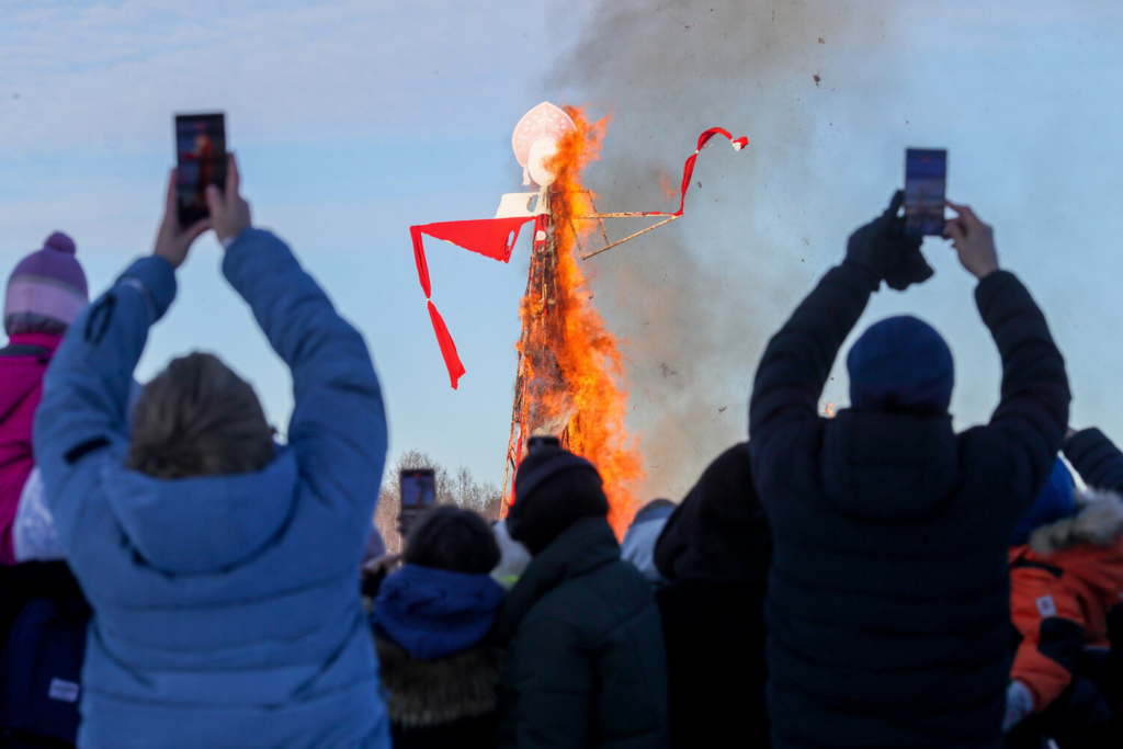 В столице во время празднования Масленицы сожгли самое большое чучело. Об этом сообщили в пресс-службе Министерства культуры России в мессенджере Max. Мероприятие прошло на территории музея-заповедника «Горки Ленинские». Высота конструкции составила 25,2 метра — это выше пятиэтажного дома. Высота конструкции составила 25,2 метра, что больше пятиэтажного дома, — уточнили в ведомстве. Для создания чучела использовали 800 метров бруса, 250 метров ткани, 28 метров декоративных узоров и около трех тонн сена. Работы заняли три недели. Накануне необычное чучело сожгли и в Липецкой области — в археологическом парке «Аргамач». Там на Масленице установили куклу в образе лабубу. Перед кульминацией праздника гости катались на лошадях и ватрушках, а также слушали выступления местных коллективов.