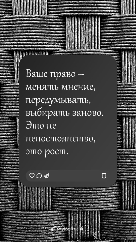 Иногда нам нужна не длинная статья, а одна точная фраза — чтобы опереться, выдохнуть и почувствовать: «это про меня». Эта рубрика — коллекция таких фраз. «Внутренний голос» для тех, кто на пути к себе. Сохраняйте ту, что нашла в вас отклик сегодня. Поддержать автора Александра Бóгдан,
